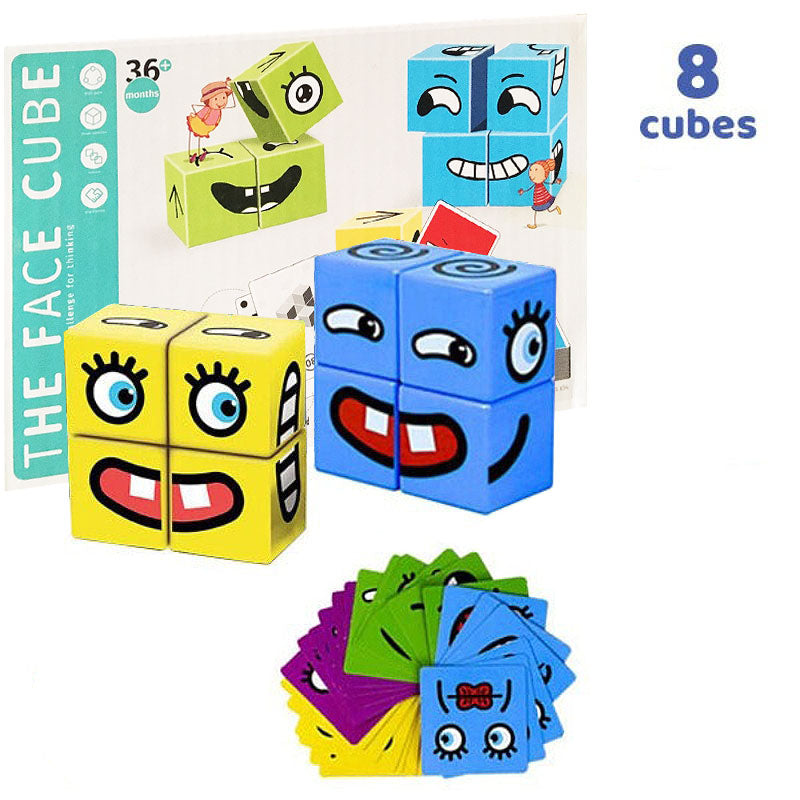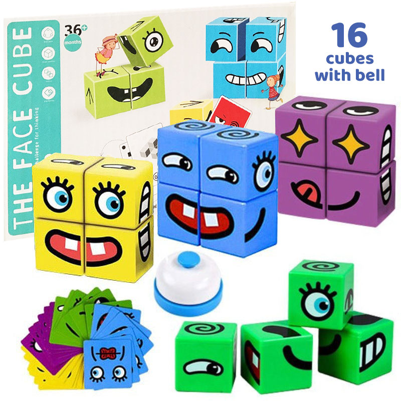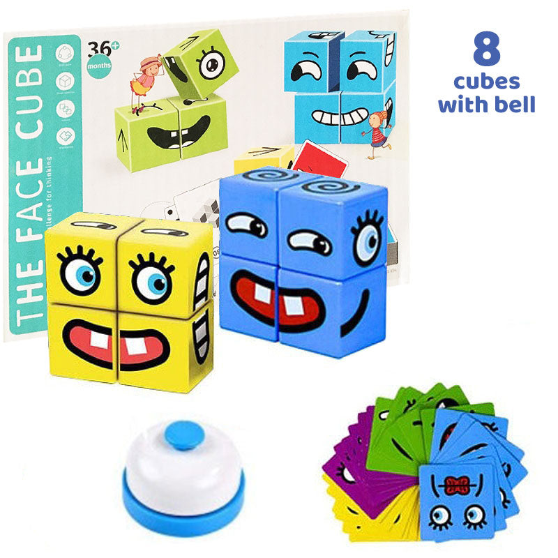 - Block Puzzle with Expressions: The expression block toy is suitable for 2-4 people and is a great interactive play toy. Kids strap the emoji card upside down on the table and Open one card at a time, build the blocks according to the reference. The one takes the shortest time wins. Contains a bell, which gives you the experience of winning a FIGHT .