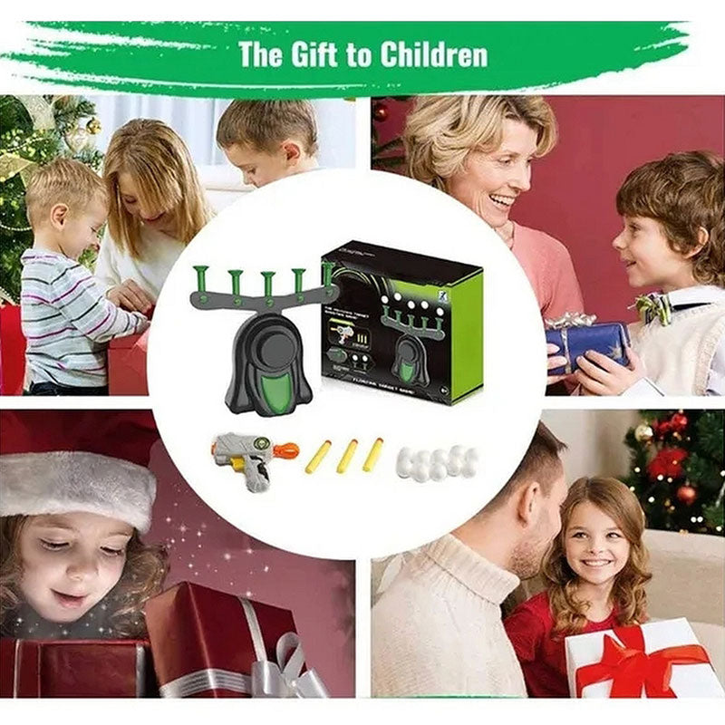 It is different from ordinary hitting games. This product has AISHOT machine, which can make five target balls hover in the air. Hold the foam bullet gun and hit the hovering targets. You can take turns to shoot in the air.